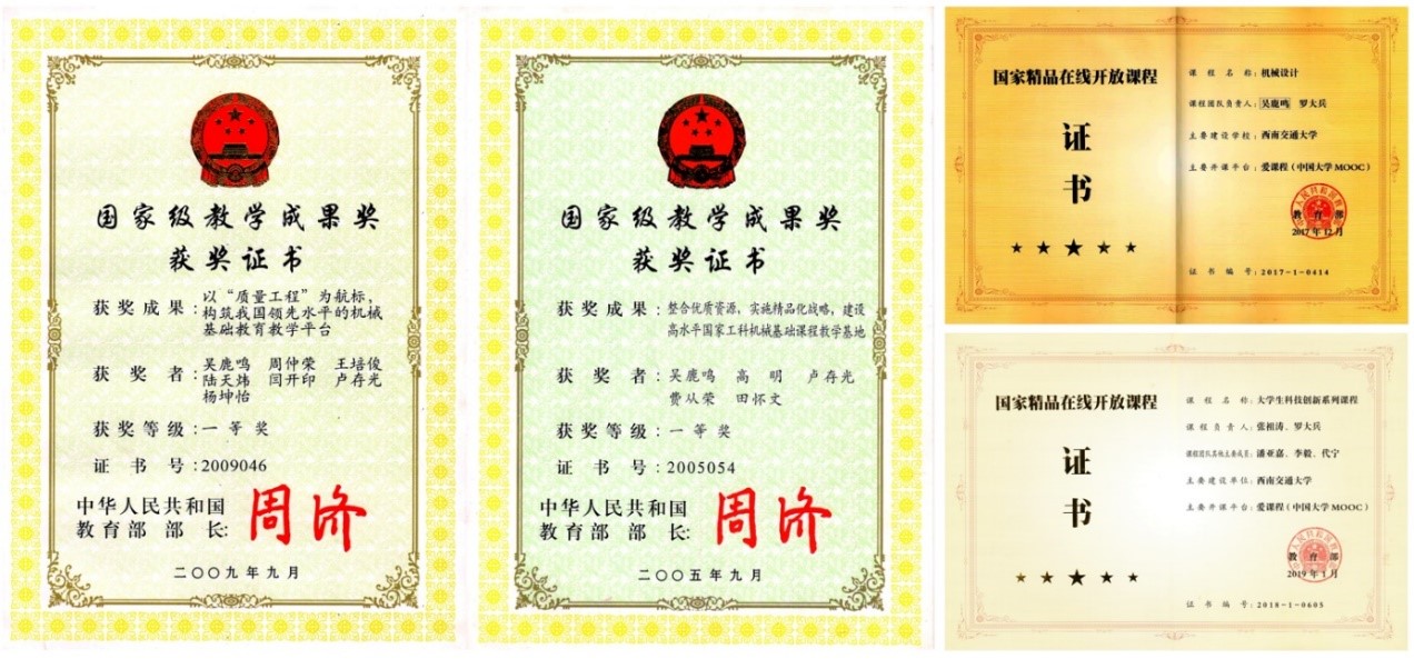 Department of Mechanical Design is mainly responsible for the teaching of core basic courses such as "Mechanical engineering drawing", "Three-dimension design and drawing", "Mechanisms Theory", "Mechanical design", "Mechanical Design Basis", "Practice of Electromechanical Integrated Design" and related course projects, covering more than 2000 students every year. In recent years, more than 30 teaching reform and research projects were undertaken to promote teaching research, course construction, textbook compilation and students’ science and innovation practice training. Up to now, 15 MOOC courses have been completes, among them "Mechanical Design", "Series Science and Technology Innovation Courses for College Students", " Innovation and Entrepreneurial Practice for College Students" were selected as national excellent online open courses. Guided students won more than 300 awards in science and innovation competitions, including more than 20 national first prizes. The blended teaching reform based on MOOC won provincial first prize of teaching achievement in 2018. In recent years, 7 textbooks have been newly compiled, including 1 national planning textbook and 2 new form textbooks.