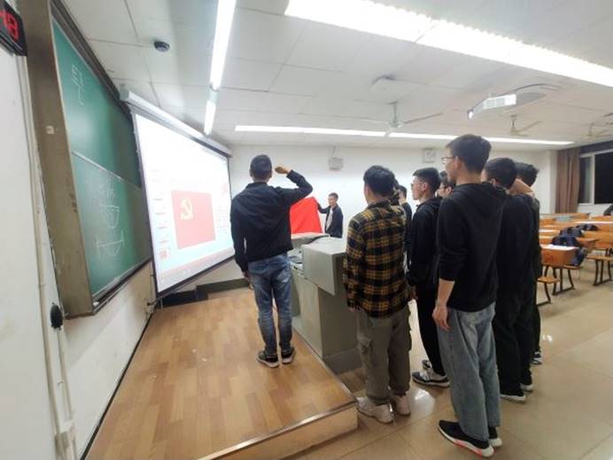 最后,由党支部书记全文强同志为领誓人,带领新发展的预备党员进行入党宣誓,大会在激昂的宣誓声中结束。