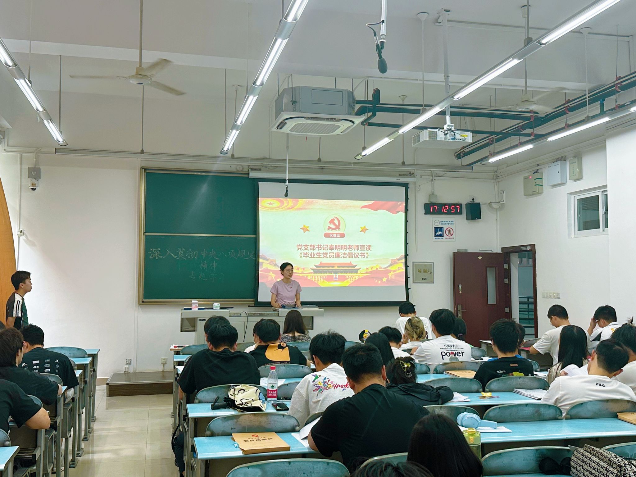 为深入贯彻中央八项规定精神,筑牢毕业生党员廉洁自律思想防线,6月12日下午,pp电子官方网站本科学生第五党支部于X2225 教室举办 “崇德尚廉,笃行致远”主题教育活动。学院党委副书记沙晓雪、党支部书记奉明明、以及支部全体党员参与活动,活动由党支部副书记宋子祥主持。