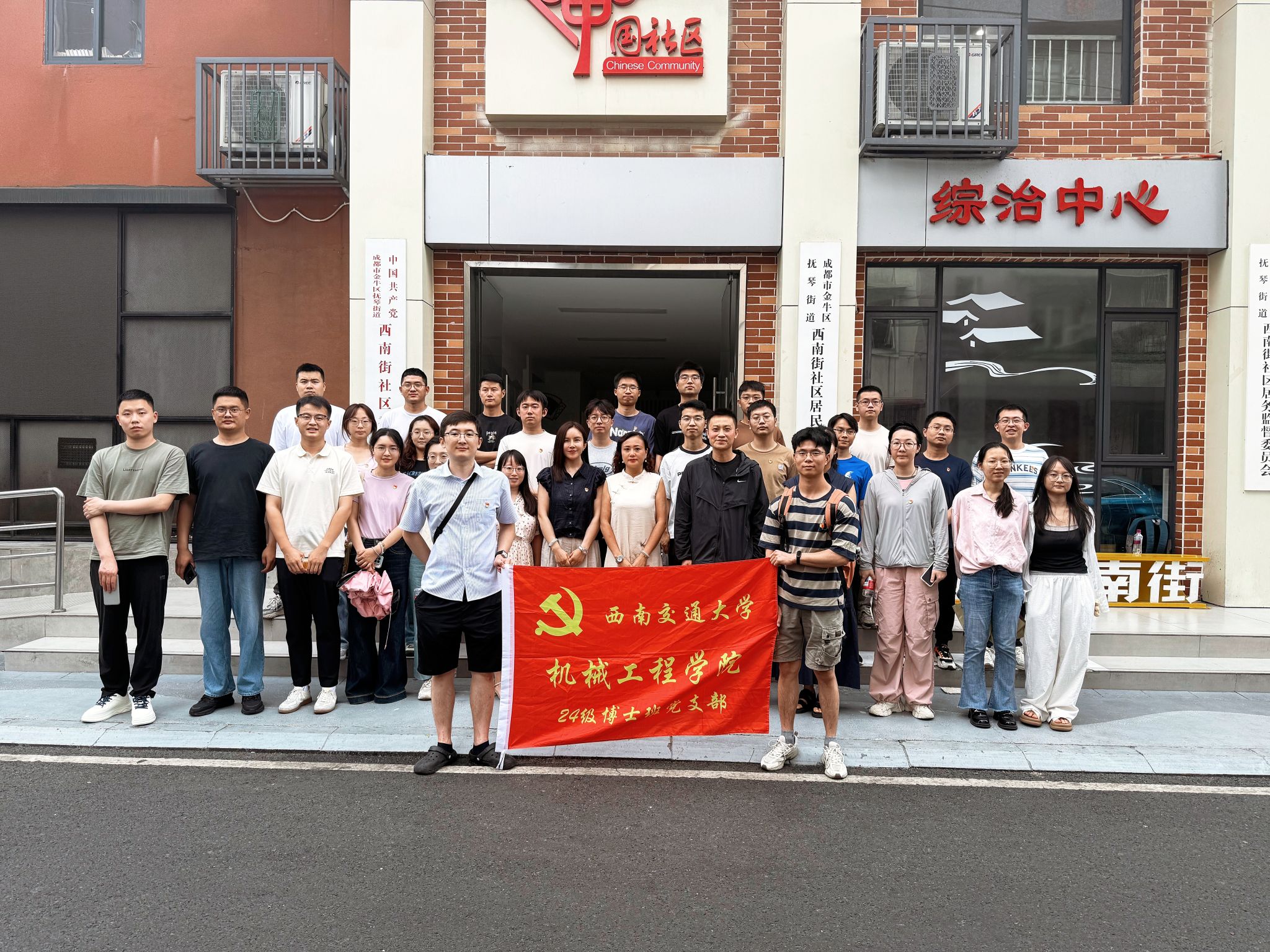 穿行于精心规划的办公空间,师生们将直观感受“一站式服务”“网格化管理”等现代化治理模式的运行效率;漫步在融合了多民族元素的街巷,彩绘墙面、特色商铺与社区文化展陈,生动诉说着党建引领下文化传承与社区营造的丰硕成果。这趟沉浸式的“基层课堂”,远非简单的参观,它是对城市社区肌理、治理逻辑的深度解码,更是对西南交大“竢实扬华,自强不息”精神中扎根大地、服务社会内涵的生动诠释。博士党员们将以研究者的敏锐眼光,捕捉数据背后的治理智慧,为后续的科研选题与社会实践积累鲜活的“田野样本”。