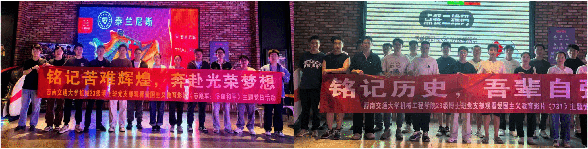 研究生之窗讯(记者 计丹 摄影报道)今年是中国人民抗日战争暨世界反法西斯战争胜利80周年。为传承弘扬伟大抗战精神,激发青年党员科研报国热情,pp电子官方网站2023级博士班党支部近期联合兄弟高校开展了主题为“铭记苦难辉煌,奔赴光荣梦想”的系列特色党日活动。通过校际联建共建、红色观影和理论学习研讨等环节,博士生党员们在追寻红色记忆中汲取精神力量,在交流研讨中凝聚奋进共识,切实将爱国情、强国志转化为科研报国的实际行动。