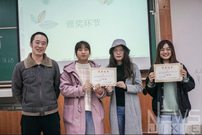 选手们展示完毕后,比赛进入了投票与计票环节,在场老师以及观众扫描屏幕上的二维码,为自己看好的文创作品投票。计票期间,进行了趣味抢答活动以及感动瞬间分享活动,抢答活动共计七道题,从游子吟到交大建校年份,生动趣味的同时又兼具知识性。感动瞬间分享活动,数名现场观众分享了几个让自己感动的瞬间。趣味活动结束后,公布了比赛结果:耿明婧组获得一等奖;蔡俞宁组、黄寒钰组获得二等奖;罗优组 、常真毓组 、曾辰组获得三等奖;郑小飞组、 王奕斐组 、肖越宇组 、黄雪艳组获得优胜奖。由各个嘉宾老师为他们颁奖。