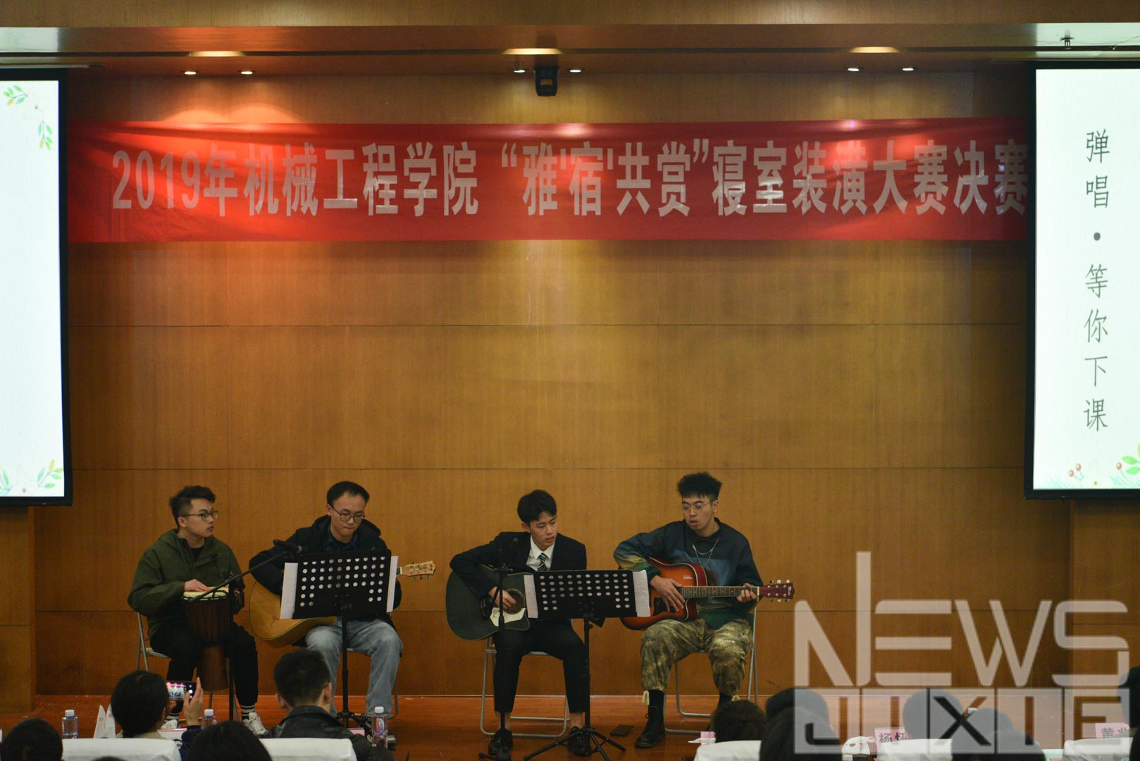 当活动正式开始,首先,由机械园区指导老师何蕊芯老师发言,她期盼机械学院同学能够拥有一个更好宿舍环境,并希望机械学子可以传承学校开拓进取的精神,展示交大机械人的风采。何老师精彩的发言,赢得了在场观众的热烈掌声。紧接着到各个宿舍的展示环节。第一位出场的寝室是T035071动物世界,他们从宿舍名字的来源,到宿舍的艺术文化氛围等进行了详细的介绍,并展示了一段相声。第二位出场的是T042064石屿,他们的答辩与表演同样十分精彩,他们用一首《等你下课》表示了青春期的悸动与美好,引得现场观众的共鸣。第三位宿舍T035100壹佰,他们的宿舍名表示了每位成员都要在考试中获得满分的志向。他们用歌舞情景剧的方式展现了宿舍之间似家人似兄弟的关系。