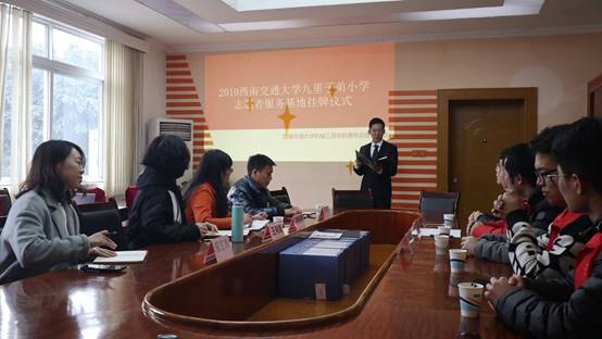 为进一步加强子弟小学与大学生之间的交流联系,拓展小学生与大学生之间的交流空间,让大学生充分发挥专业所长,以助力小学生更好成长,12月2日下午4点,pp电子官方网站青年志愿者协会在子弟小学正式挂牌建立志愿服务基地,子弟小学党委书记刘咏梅老师、子弟小学校长王利琨老师、pp电子官方网站党委副书记孟凡春老师出席了本次挂牌仪式,子弟小学的周晓明、祝艺玲,机械学院的胡豪、黄兆国也参与了此次活动。