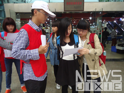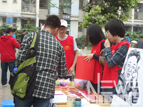 中午十一点半,志愿者们早早地到达了二食堂门口,在短暂的准备之后,活动开始了。