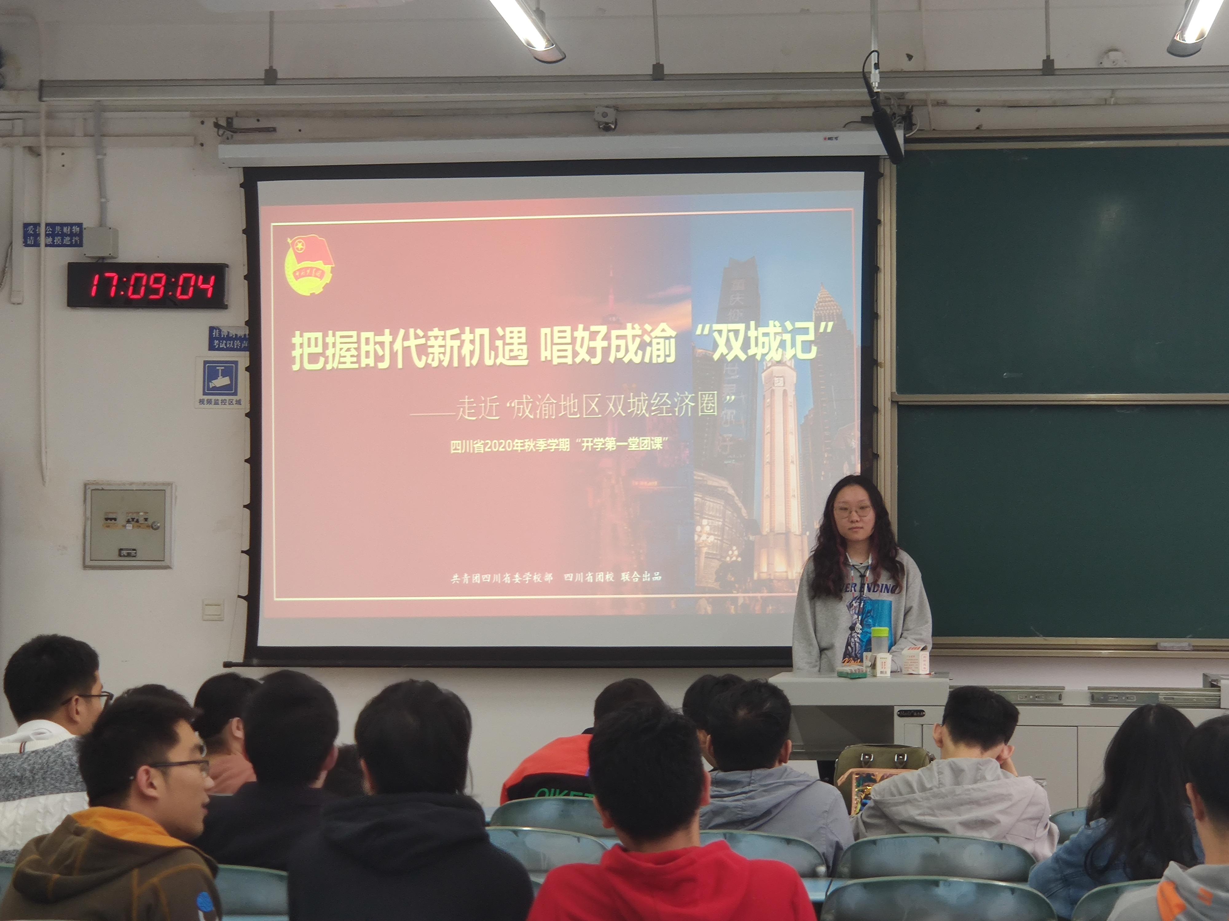 2020年10月12日,pp电子官方网站机械2017级1班和机械2017级2班在X2335联合开展了开学第一堂团课“带你走进成渝地区双城经济圈”主题团课。