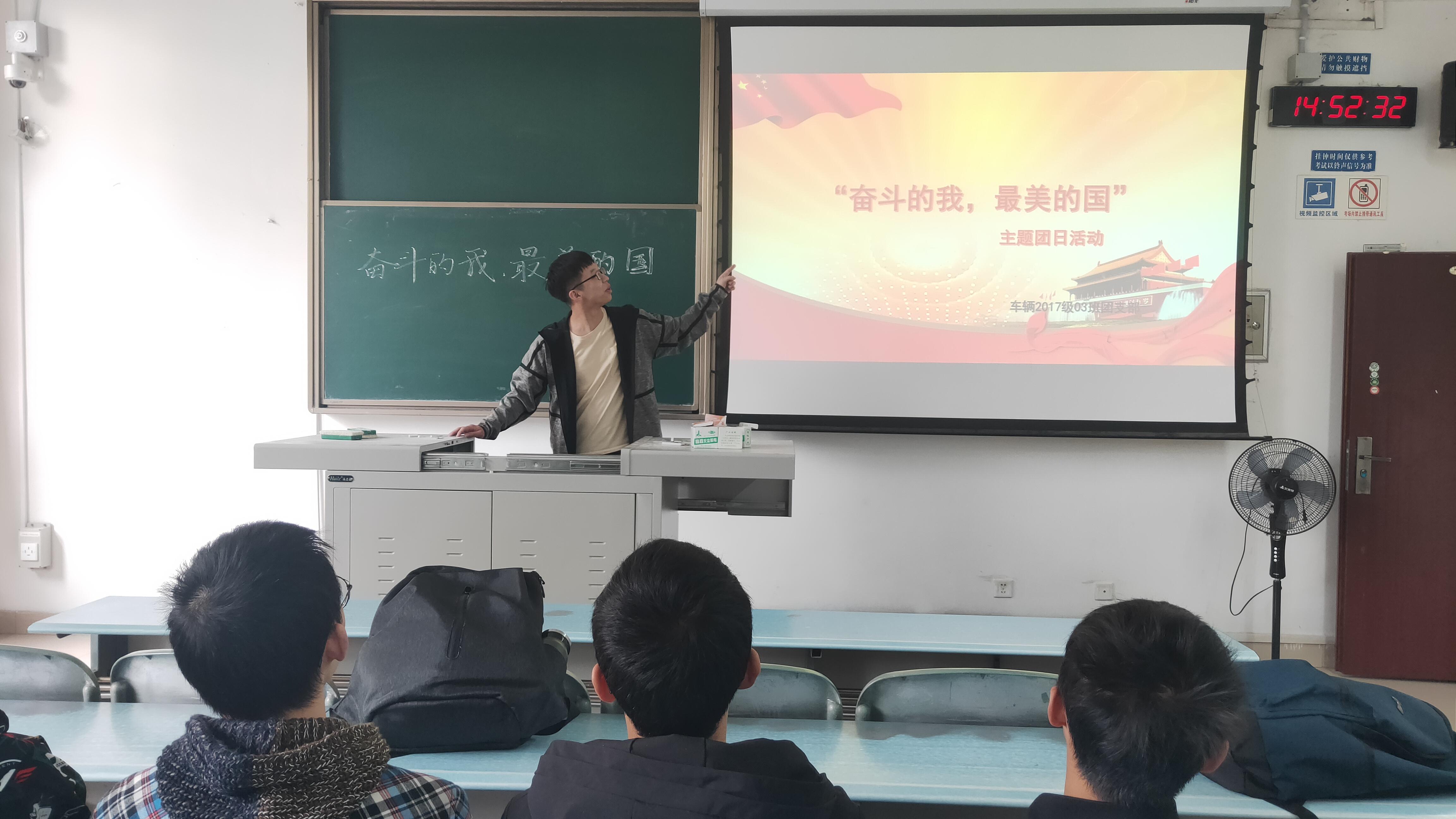 为了进一步贯彻团委开展的进行社会主义核心价值体系教育,进行爱祖国、爱福建、爱师大教育,使同学们真正将思想落实到行动中去,我车辆2017级03班团支部决定在2020/10/18日开展以“奋斗的我,最美的国”为主题的团日活动。我支部精心策划的此次活动旨在让我支部团员对奋斗的我,美丽的国,进行文明礼仪教育,使同学们加强自我的认知,更清楚地认识到身为当代大学生所应有的良好风貌以及肩负的社会使命感,并引导我支部团员青年积极投身于迎接教育部本科教学评估工作中,为学校建设贡献自己的绵薄之力,做当之无愧的社会主义接班人。