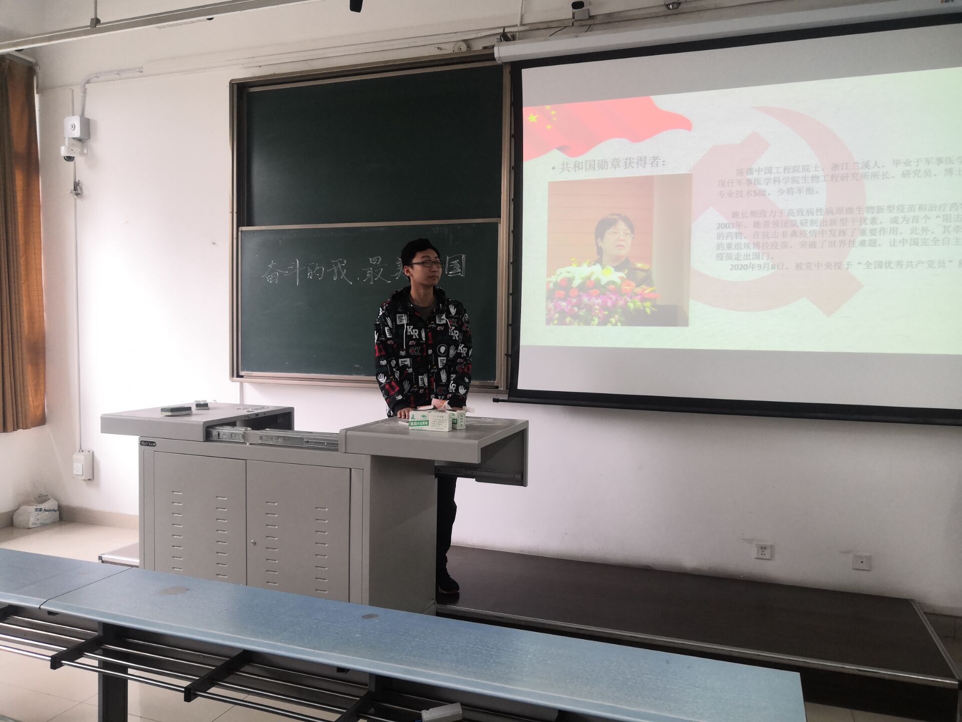 首先由机械2017-09班团支书为大家展示在2020年9.8号举行的表彰大会得视频,并对三人事迹进行简单讲述。展示期间同学们流露出了对英雄们的崇高敬意,以及身为国家团结中的一份子的自豪。