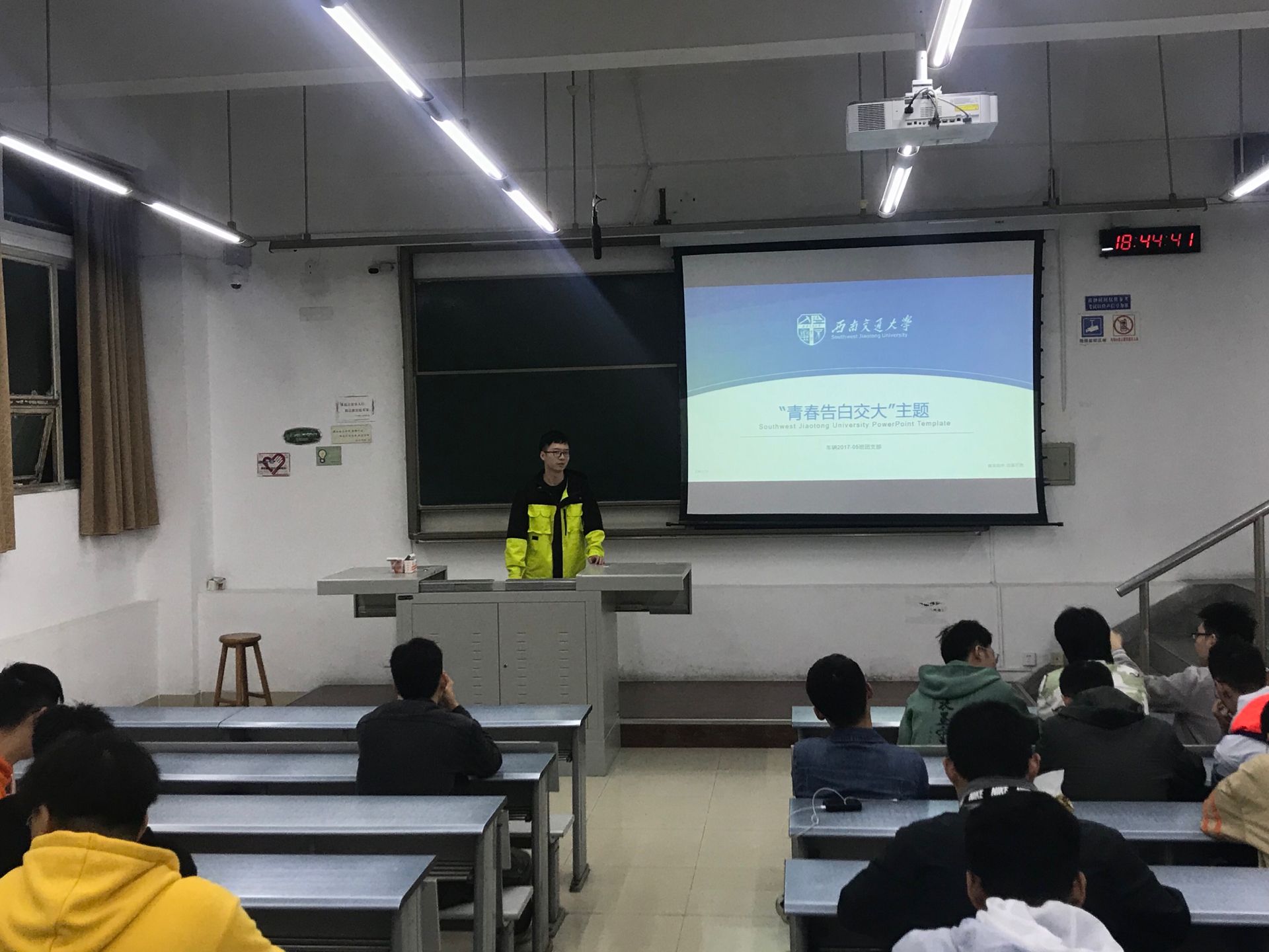 活动于晚上7点开始,参加活动人数31人,组织进行签到记录。团支部书记杨文昊首先致开场词,强调了在新中国成立71周年与建党一百周年的重要时刻的背景下,作为新时代新青年的我们要始终牢记中华民族伟大复兴的伟大使命,要理解习近平总书记在党的十九大报告中指出的“青年兴则国家兴,青年强则国家强。青年一代有理想、有本领、有担当,国家就有前途,民族就有希望。中国梦是历史的、现实的,也是未来的;是我们这一代的,更是青年一代的。中华民族伟大复兴的中国梦终将在一代代青年的接力奋斗中变成现实。”的深刻含义。在这里程碑的时刻,我们青年要不断地充实自己,而交大就是在不断地为祖国培养出色的青年人才,为新中国的交通事业作出了巨大的贡献,我们作为交大学子借此机会为交大告白。开场词后,班长同晓阳带领大家重温了交大历史,从1896年到今天,学校经过多次搬迁,成为了如今的pp电子官方网站,学校的历史是悠久的,是伟大的,竢实扬华的交大精神没有被遗失,而是深深地刻在了每一个交大人的心中。同时,同晓阳也为我们介绍了杰出的西南交大校友与毕业学长学姐的优秀事迹,鼓励车辆5班的各位同学在毕业季到来之时,也能很好地为自己的未来做好打算,以后也能成为对社会有贡献的人。班长致辞完毕后,全班同学对交大各自进行了讨论与告白,其中孙建同学上台为大家介绍了交大在科研领域的重大成就,期望大家以后也能在机械等领域有着自己的一番作为,成为一名合格的交大人、机械人。