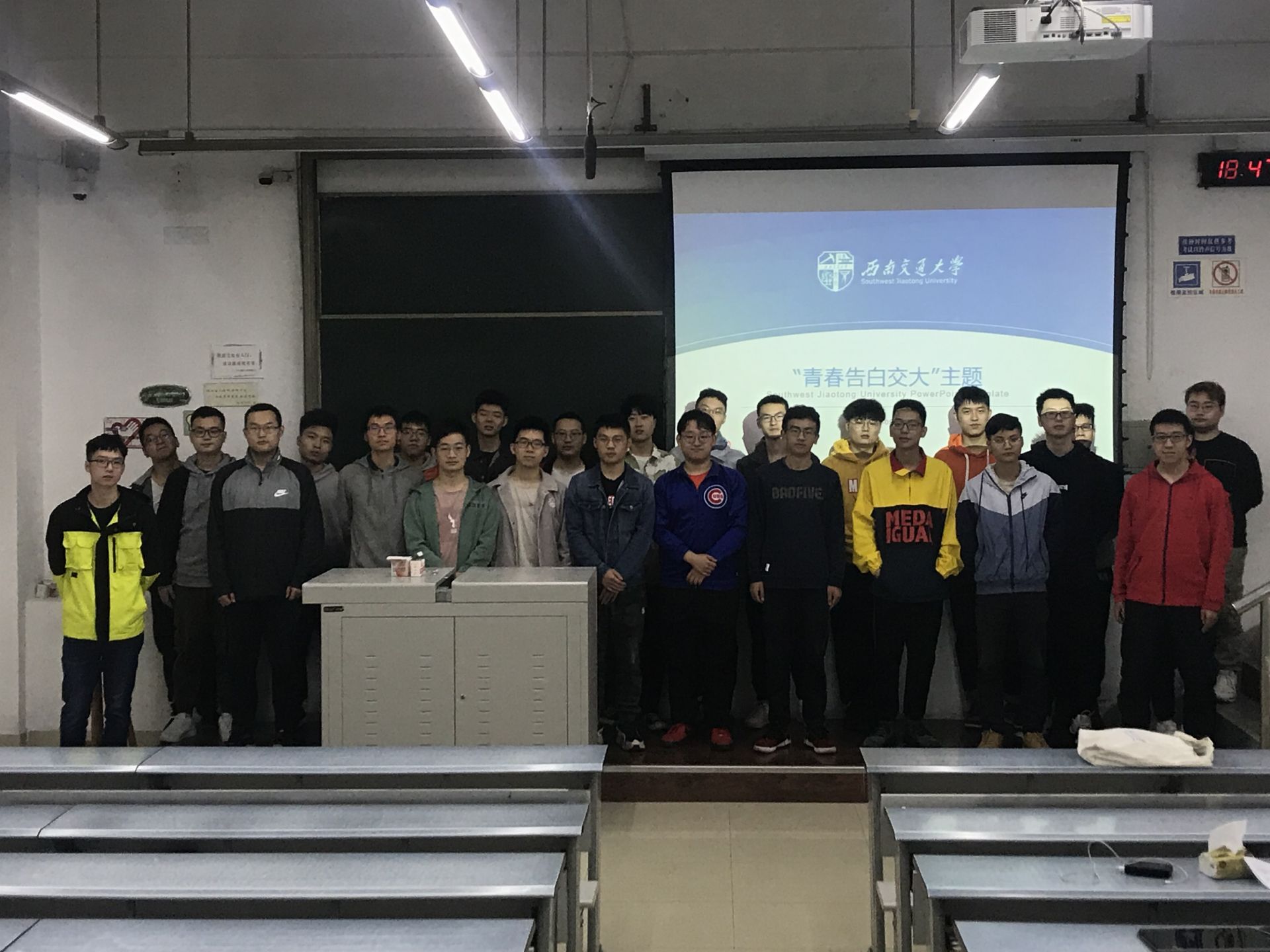 在活动的最后,车辆2017级5班团支部全体同学进行合影留念,期望大家在以后的学习生活中互相帮助,在这一重要时刻用实力为交大献上青春的告白之歌,至此,活动圆满结束。