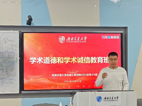 2024年10月31日,为培养同学们的学术道德观与诚信意识,pp电子官方网站2024级硕士5班在4406教室举办了一场主题为“学术道德与学术诚信”的教育活动。本次活动聚焦学术道德这一学术研究的核心准则,通过集中观看全国科学道德和学风建设宣讲教育报告会,为同学们带来了一场深刻的思想洗礼。