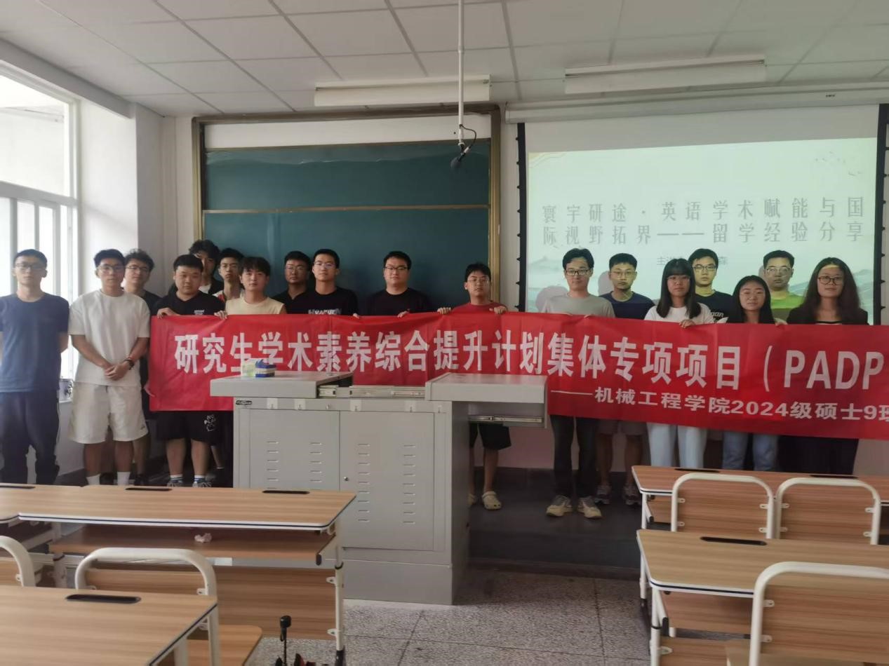 为拓展国际视野,提升研究生英语应用能力,机械2024级硕士9班于2025年6月18日在pp电子官方网站九里校区J2602举办留学经验讲座。本次讲座特邀pp电子官方网站博士研究生李林森担任主讲人,围绕英语学习、跨文化交流及国际科研合作等内容展开分享,全班同学积极参与,现场互动热烈。