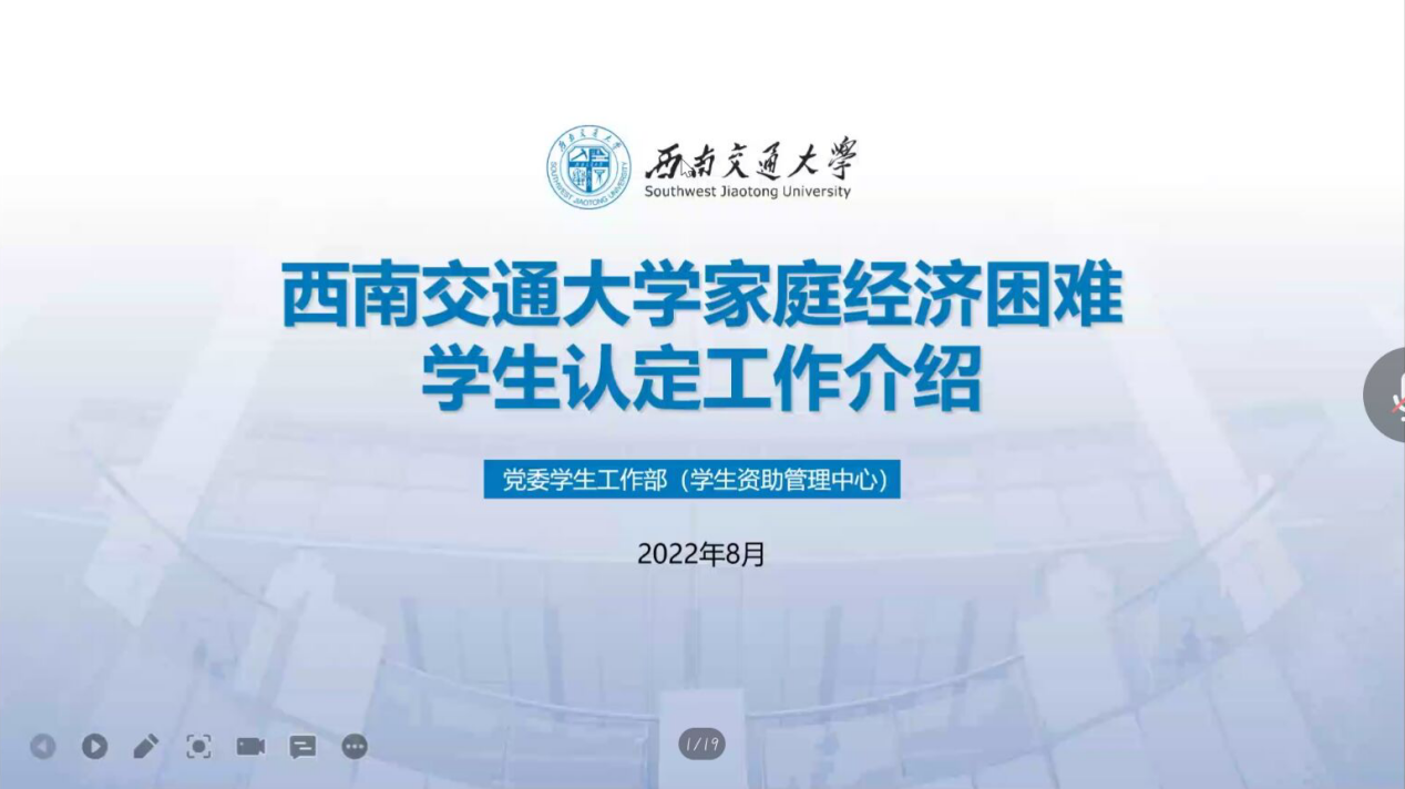 2022年8月30日19:00,由于近期疫情防控形势严峻,pp电子官方网站于线上举行了2022级新生资助专题讲座。本次讲座针对新生关于奖助学金、贫困认定、勤工助学等事务进行详细讲解。参与本次会议的人员有学生资助中心米艳老师、辅导员邓慧心老师、罗晗葳老师、李曦老师,以及pp电子官方网站2022级新生。