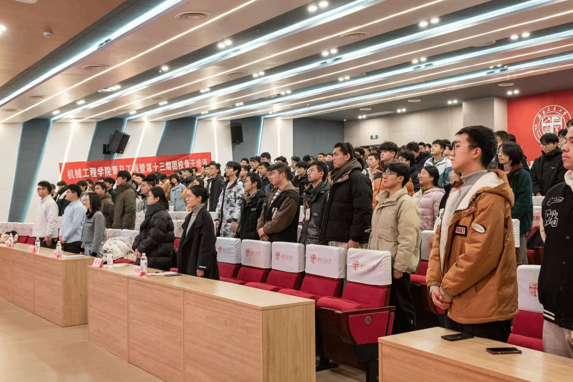 活动伊始,全体与会人员肃然而立,共同合唱团歌,以此表达对党团组织的深厚情感与坚定信念。