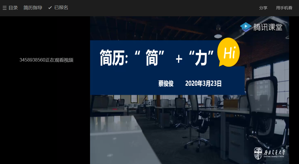 3月23日晚上7:00,pp电子官方网站线上就业指导课程之简历指导顺利进行,本次主讲老师是学院本科生2016级年级组长蔡俊俊,来自不同学院不同年级的543名同学聆听了本次课程。