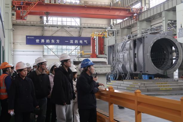 师生一行首先抵达电力装备制造业的领军企业之一——东方电气集团东方汽轮机有限公司。在东方汽轮机,同学们参观了企业展厅,系统了解了公司的发展历程、核心产品与技术突破。随后,大家参观清洁高效透平动力装备全国重点实验室,近距离观摩先进的实验设备与技术研究场景。
