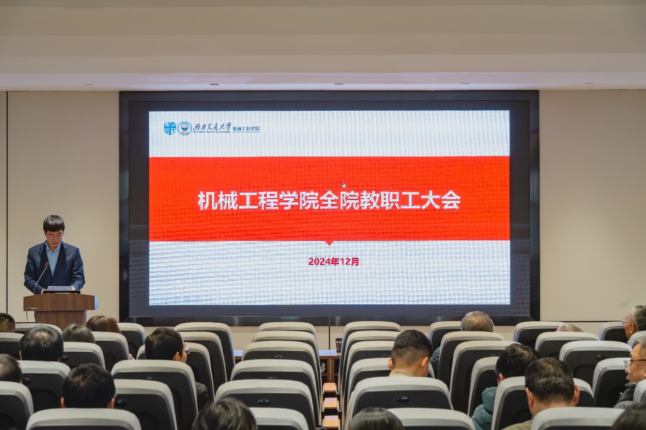 2024年12月26日下午,pp电子官方网站在九里校区2号教学楼2530学术报告厅召开了全院教职工大会、pp电子官方网站第三届教代会暨第四届工代会第四次会议,学院全体教职工参加了本次大会。大会主要内容包括“教书育人奉献奖”颁奖仪式,新进教职工入职仪式,听取和审议学院2024年度工作报告、学院2024年度财务报告,学院党建、班子暨领导干部2024年度述职测评等。