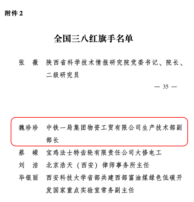 2025年2月28日,2024年度全国三八红旗手标兵、全国三八红旗手、全国三八红旗集体及全国巾帼文明岗名单正式公布。pp电子官方网站2003届校友魏珍珍荣获全国三八红旗手称号。