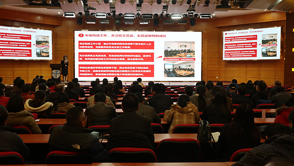 2017年12月26号晚上7点,pp电子官方网站2017年度教职工大会在我校九里校区5号教学楼国际会议厅召开。pp电子官方网站院长周仲荣、学院党委书记战凤、学院中层领导干部和我院全体教职工参加了此次会议。本次大会分为学院2017年度党建工作总结汇报暨战凤同志个人述职、学院2017年度中心工作总结汇报暨周仲荣同志个人述职、学院中层领导干部个人述职和民主测评四项议程。