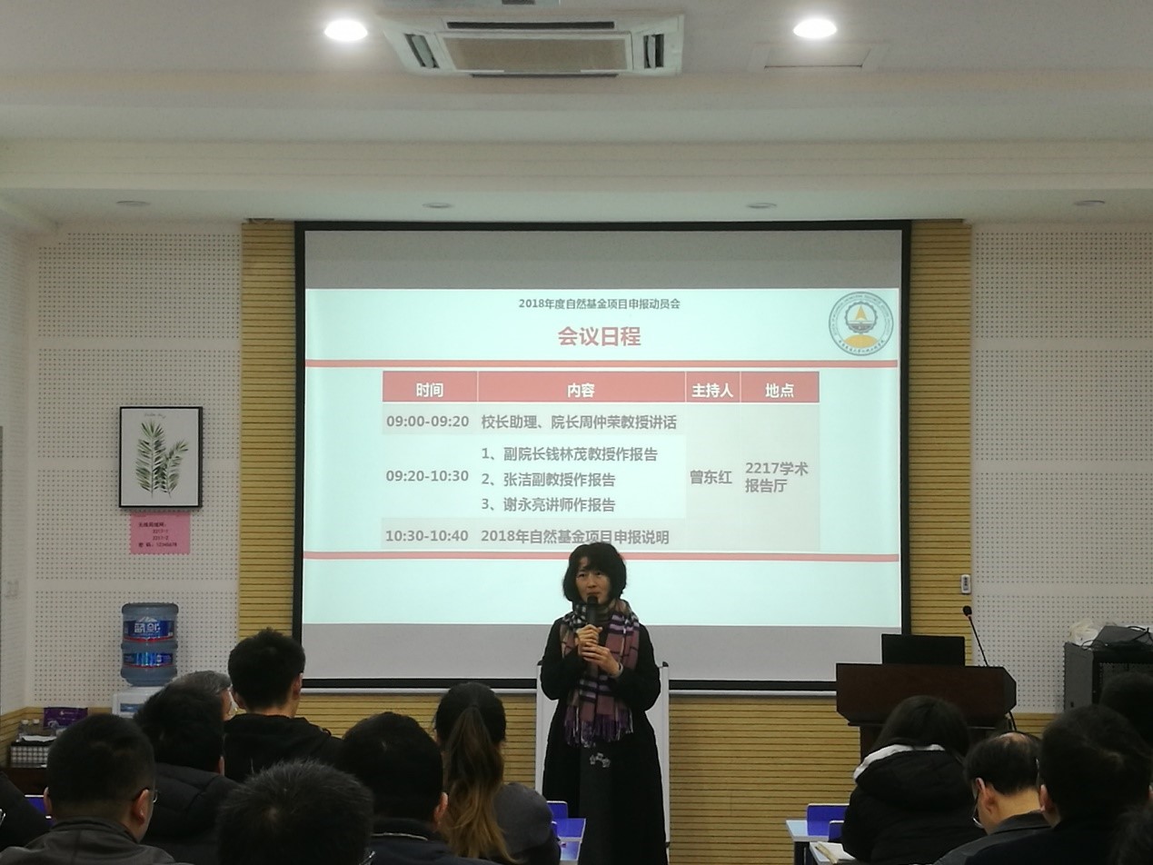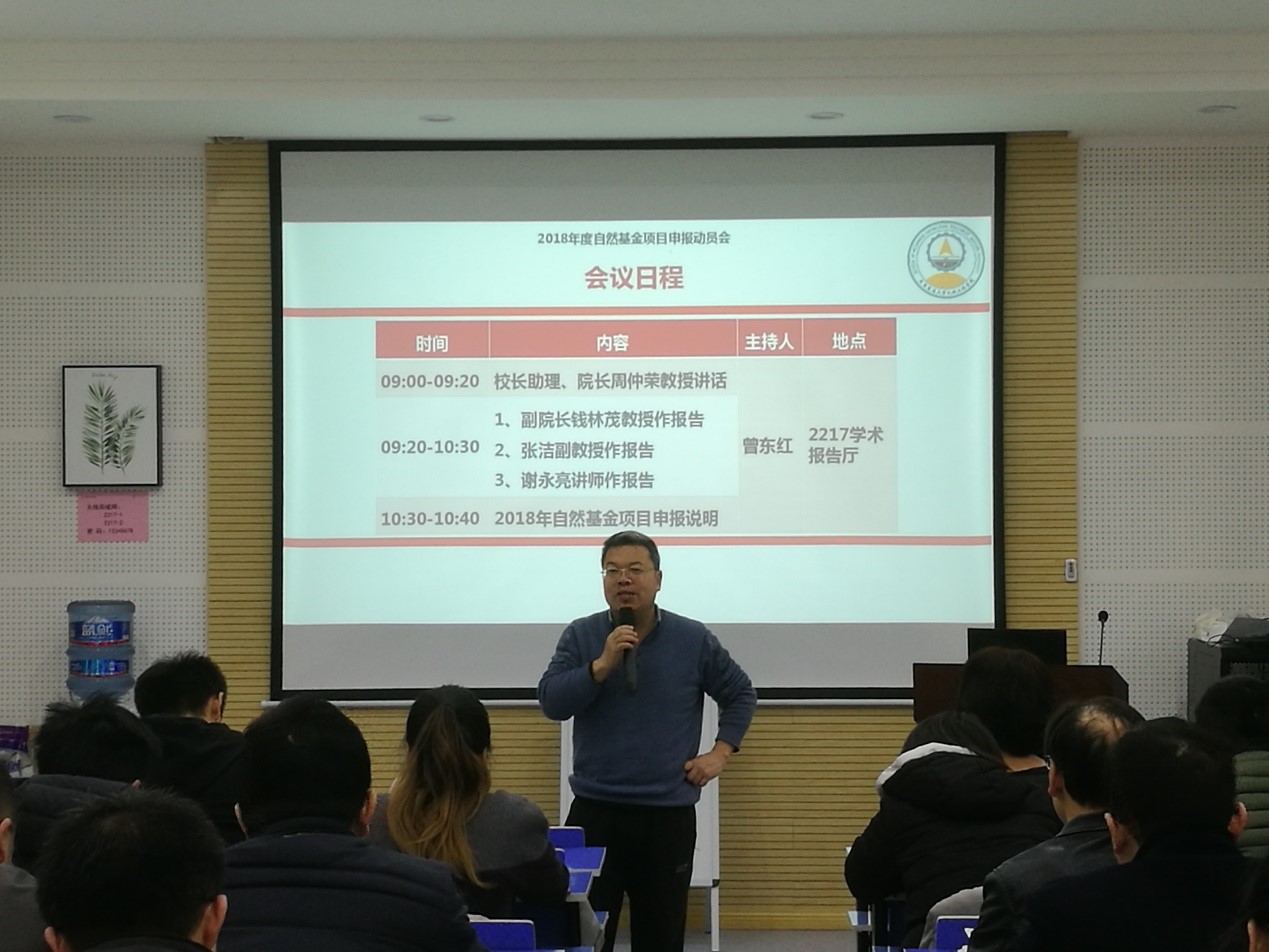 最后,副院长曾东红跟与会人员报告了学院支持自然基金项目申报的政策和2018年度自然基金项目申报工作安排。