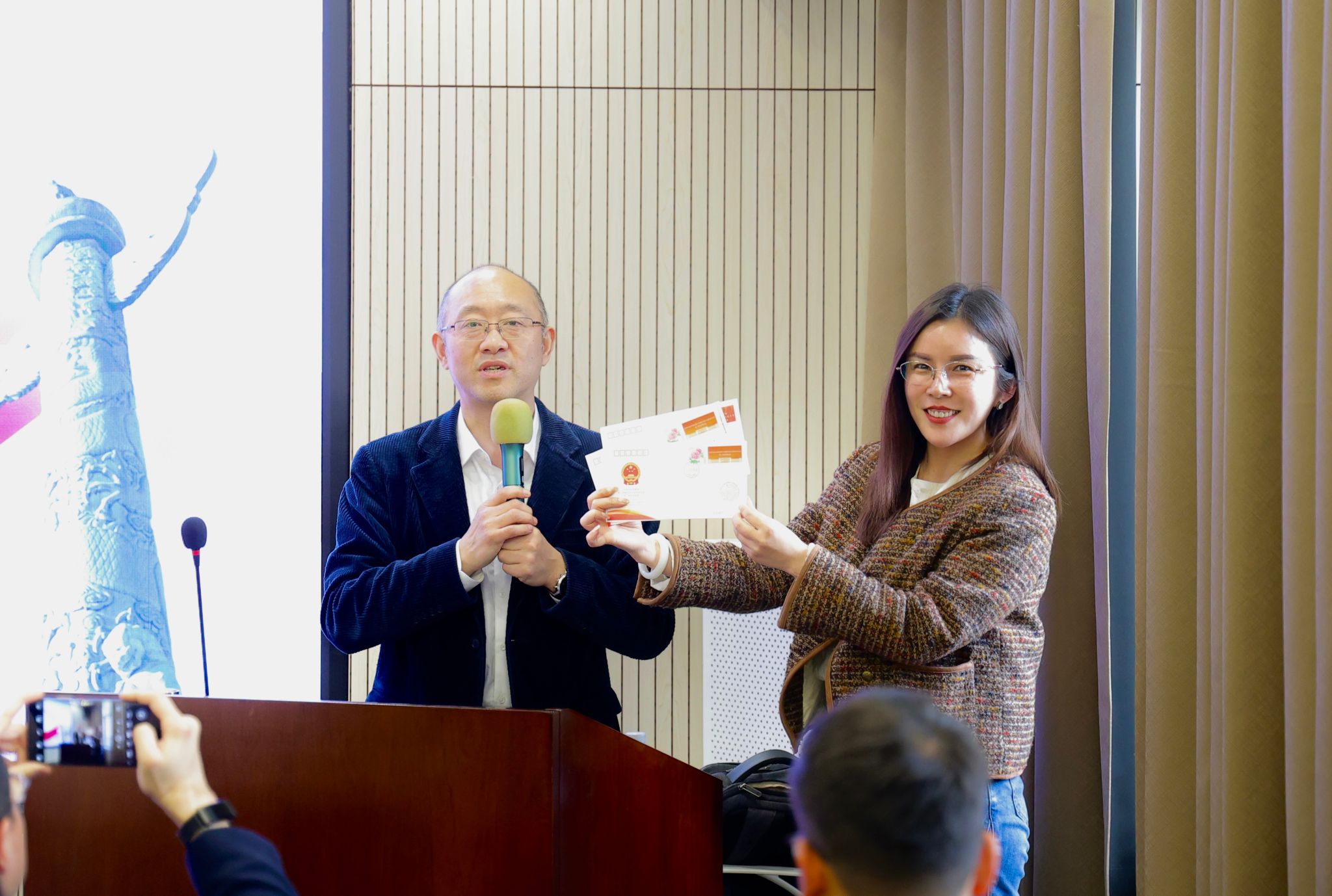 现场还进行了互动交流环节,张祖涛教授就现场师生关心关注的学习科研、就业发展和国家资助政策等问题进行了一一解答,并为同学们送上了全国两会纪念邮票信封。现场一位同学在听完讲座后对张教授表达了感谢:“作为一名典型的工科女生,我之前确实在就业方面受到了一些挫折。今天听了张教授的讲座,了解到张教授在全国两会上提出的‘保障高校女毕业生就业合法权益’提案,我倍受感动,也实实在在增强了我的自信心,谢谢张教授!”。