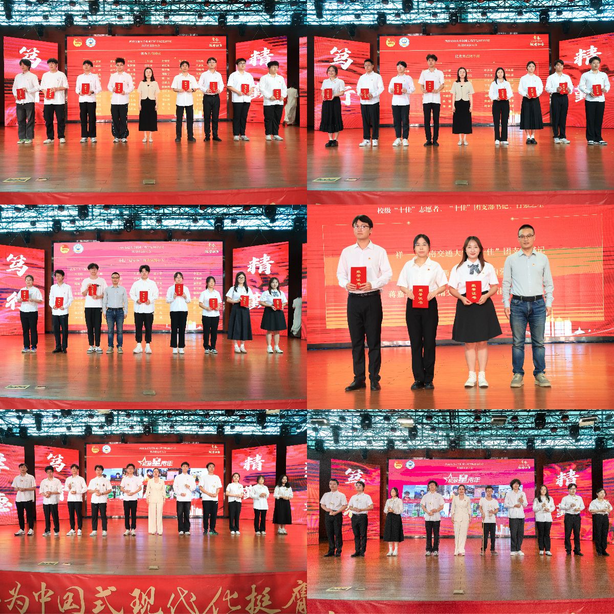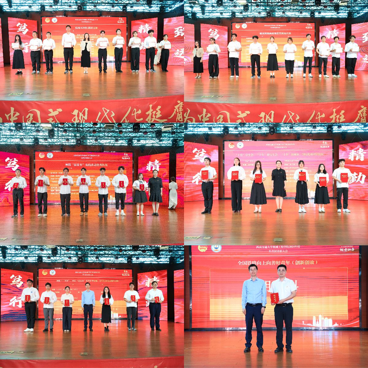 何蕊芯宣读了表彰决定。胡名科老师获“全国铁路向上向善好青年”称号,机械(茅班)2021-01班团支部等9个团支部获“pp电子官方网站院级五四红旗团支部”称号;何金敏等58名同志获“pp电子官方网站优秀共青团干部”称号;张景萱等85名同志获“pp电子官方网站优秀共青团员”称号;pp电子官方网站研究生会等3个团学组织获“pp电子官方网站‘十佳’团学组织”称号;李祥等3名同志获“pp电子官方网站‘十佳’个人荣誉”称号;马健翔等90名同志获“寒假‘返家乡’实践活动优秀个人”称号;5支队伍获“寒假‘返家乡’实践活动优秀队伍”称号,蒋嘉雯等45名同志获“暑假‘三下乡’实践活动优秀个人”称号,5支队伍获“暑期‘三下乡’实践活动优秀队伍”称号。pp电子官方网站学生会等6个团学组织获“学院优秀团学组织”称号,陈晓宇等6名老师获“学院优秀团学组织指导老师”称号,罗家豪等20名同志获“机械‘星’青年”称号,机械类2024-07班等9个班级获“‘星火燎原杯’精英班集体”称号。与会嘉宾和领导为获奖集体和个人代表颁奖。