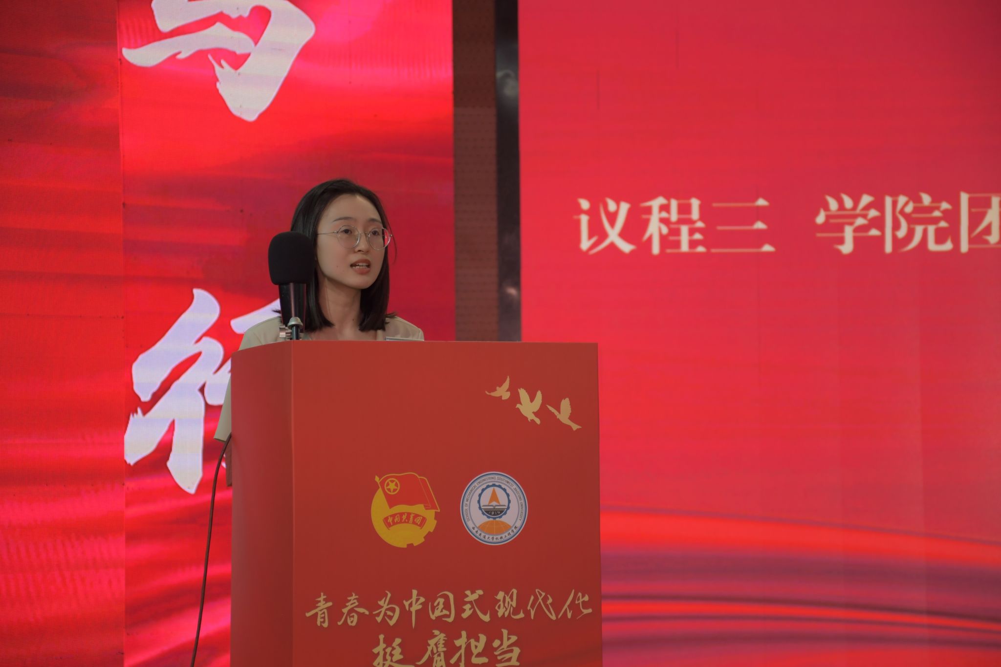 郑源代表学校共青团对大会的召开表示祝贺,对pp电子官方网站在思想引领、学术创新、社会实践、志愿服务等方面的工作成效表示肯定。她指出,在过去一年里,pp电子官方网站团委紧紧围绕中心、服务大局,扎实开展共青团工作,始终做到密切联系青年、服务青年、引领青年,荣获“pp电子官方网站五四红旗团委”荣誉称号。她就接下来如何做好共青团工作提出了三点希望:一是希望同学们知行合一,在砥砺奋进中锤炼报国初心;二是希望老师们德才并育,在躬耕实践中扛起树人使命;三是学院团委凝心聚力,在服务大局中彰显青春作为。