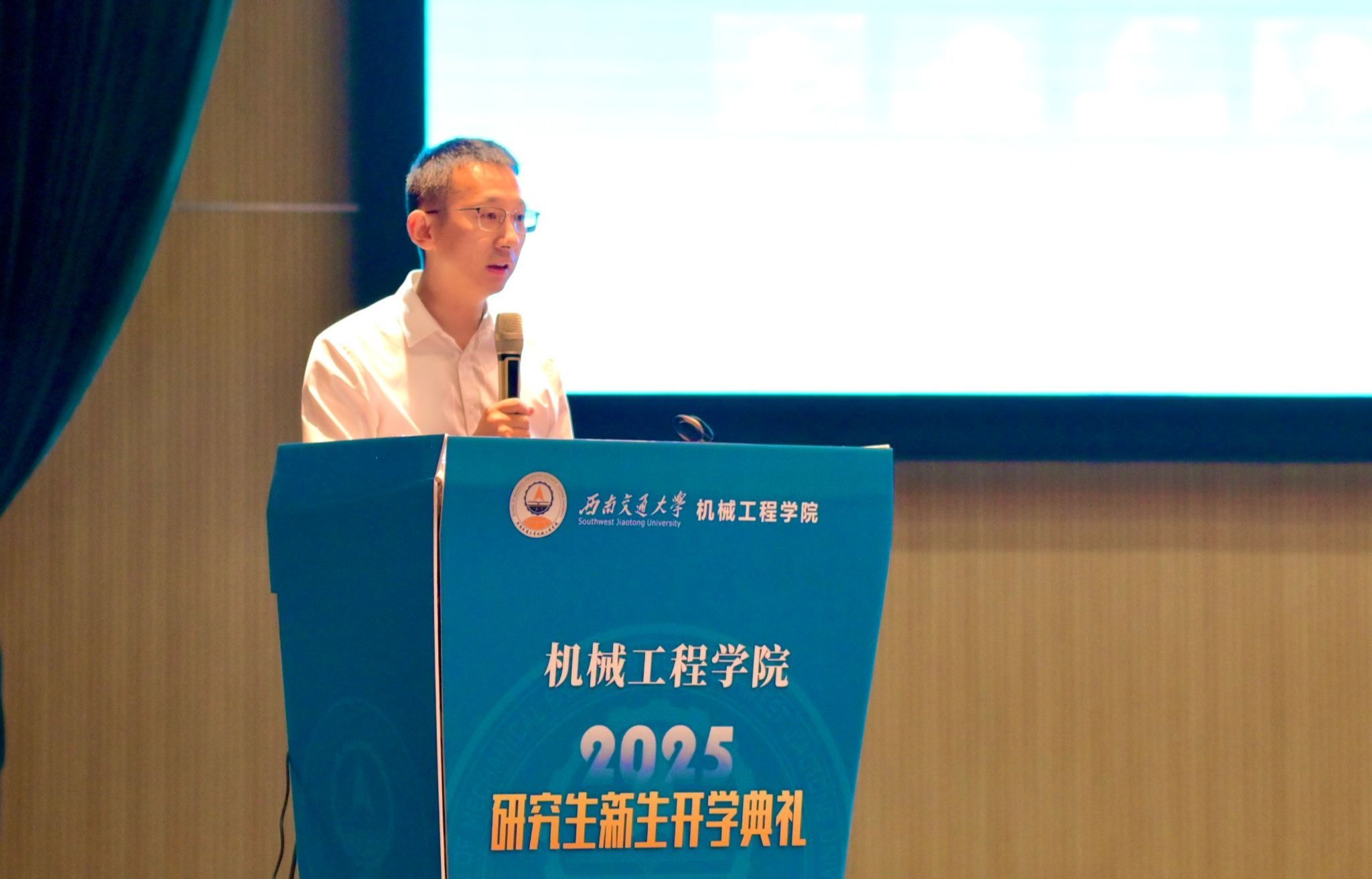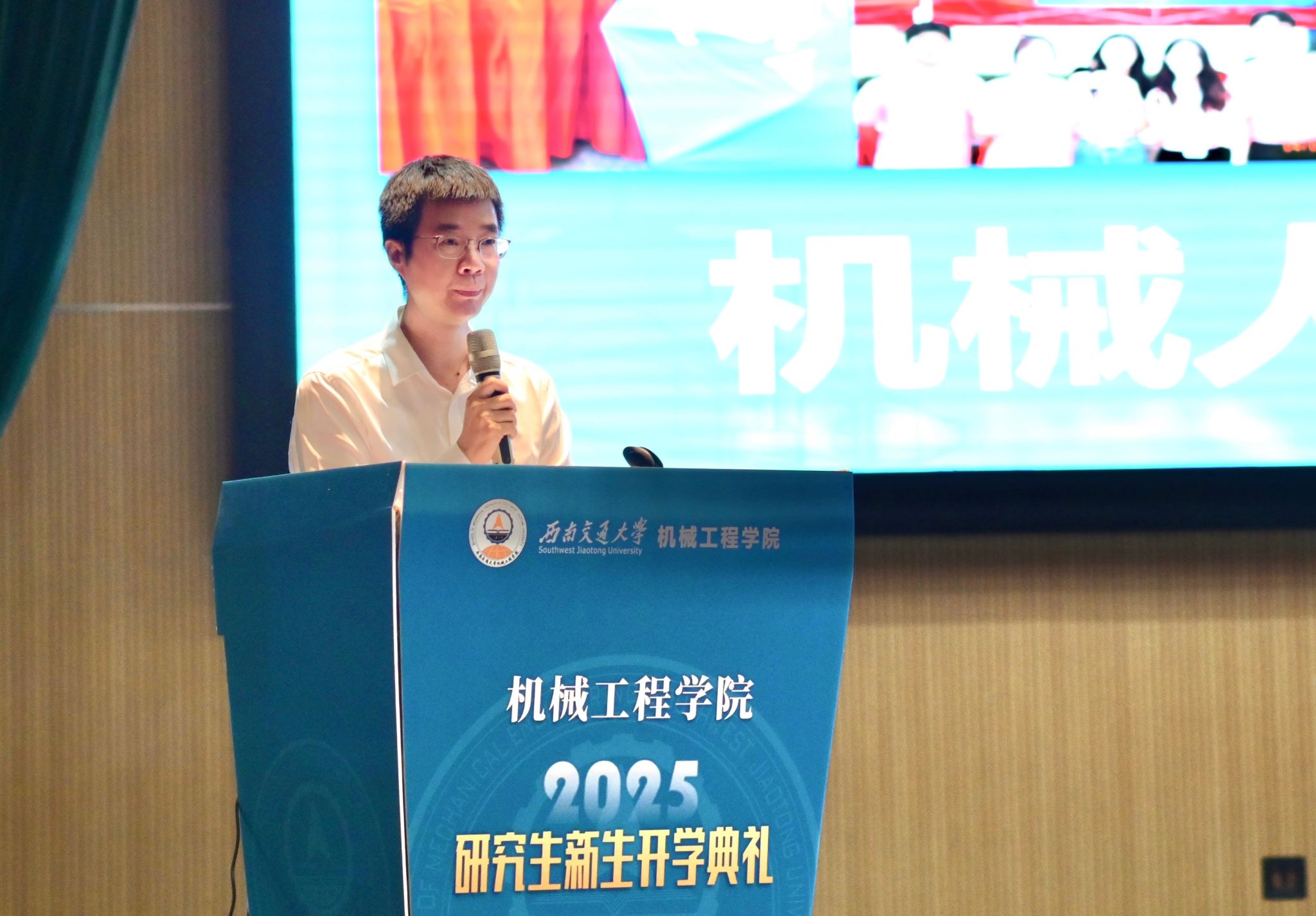 学院导师代表郭亮和青年教师张志瑶分别进行了发言。郭亮老师希望同学们将个人科研梦想与国家战略和产业需求紧密结合,在机械工程前沿领域找准研究方向,珍惜在机械学院的时光,成长为有理想、有本领、有担当的卓越工程人才,用科研实践为行业发展与社会进步贡献力量。张志瑶老师结合自己在交大的求学经历和科研之路,向同学们提出了三点体会:一是大学之大,在于无限可能,请勇敢探索;二是比积累知识更重要的,是培养独立思考的能力;三是请善待成长中的烦恼,给自己更多勇气。她希望同学们在交大的岁月里,勇敢尝试,学会思考,坦然面对成长中的烦恼,努力成为更好的自己。