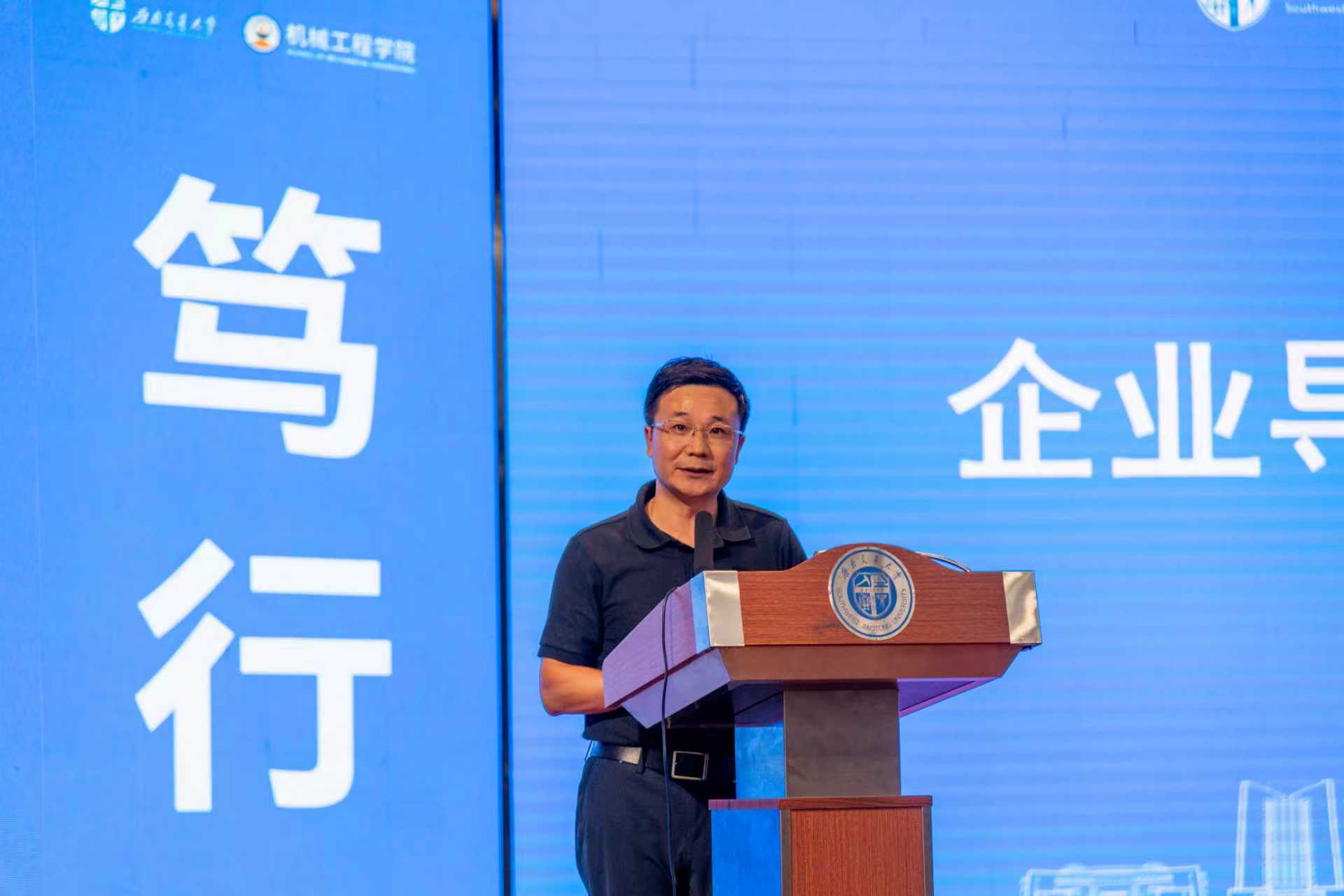 中建西南院双碳工程技术研究中心总工程师钟辉智作为企业导师代表发言。他指出,企业导师团队将通过分享行业的“前沿洞察”与“实战经验”、交流正确的人生方程式、搭建从校园到职场的“桥梁”等方式为同学们的职业生涯发展助力,并向同学们提出了三点建议:一是保持好奇,主动学习;二是勇于尝试,不怕试错;三是脚踏实地,放眼长远。