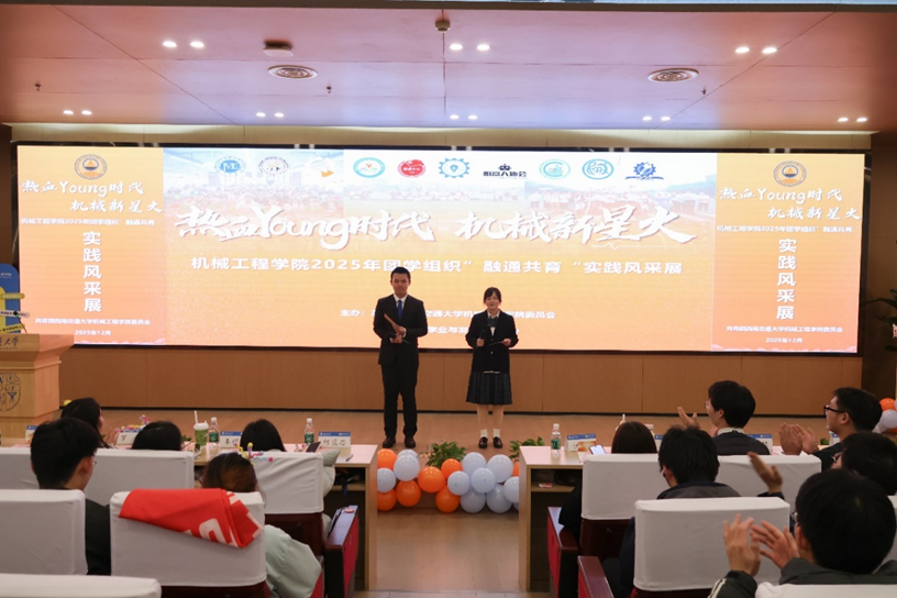 为全面展示我院团学组织青春活力与工作成果,学习交流各组织践行“五育并举”“五育融通”的经验做法,12月11日,我院“热血Young时代,机械新星火”——2025年团学组织“融通共育”实践风采展在犀浦校区图书馆一号报告厅举行,学院党委副书记沙晓雪、团委书记何蕊芯、各团学组织指导老师及300余名学生齐聚一堂,共同回顾奋斗足迹,彰显青春风采,展望未来征程!
