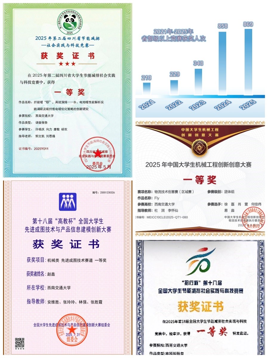 ④获中国机械行业产教融合教育教学创新大赛全国赛一等奖1项,四川省教师数字素养提升实践比赛二等奖1项;
