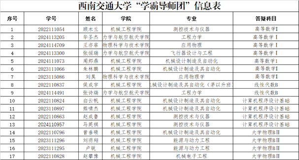 自招募通知发布以来,活动得到了全校各学院学生的广泛关注和积极响应。经过严格的成绩核实(基础学科成绩要求90分以上或专业排名前10%)以及面试筛选,重点考察候选人的沟通表达能力与责任心,最终有17名来自各年级各学院的优秀学子脱颖而出,入选首届“学霸导师团”。