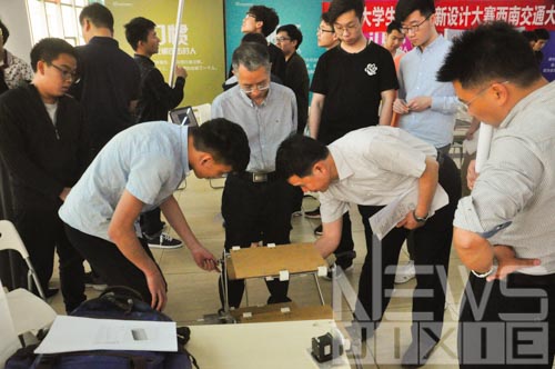同时,现场陈列着他们做的实物或比例模型,吸引了大量的目光,评委老师们更是目不转睛。值得一提的是,此次比赛中大一新生也有积极参与,这说明我校新生对科技竞赛的热情正在不断提升。