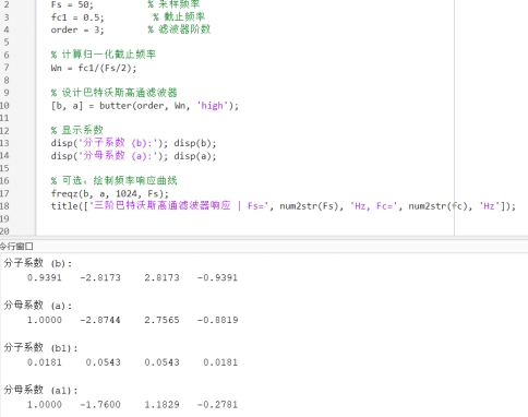 首先我在matlab中编写代码以生成相应的滤波器系数:
