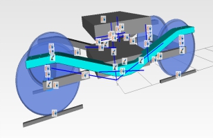 图5-1 导入柔性体侧梁的转向架总体动 图5-2 单节动车的总体动力学模型