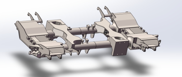 为确保本设计在高速工况下的结构强度与可靠性,本设计的套架采用成熟且久经考验的合金钢焊接箱形梁方案,一定程度借鉴了ICE3动车转向架的结构。