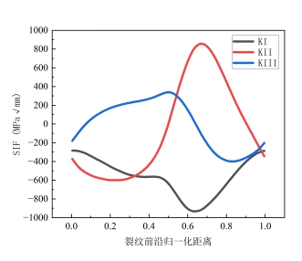 在断裂力学当中,我们通常使用应力强度因子来量化裂纹尖端的应力场强度,并根据裂纹类型(张开型裂纹、划开型裂纹、撕开型裂纹)的不同,分为了KI、KII、KIII三种类型。而等效强度因子ΔKeq,是综合KI、KII、KIII等效出来的反应裂纹扩展的驱动力。