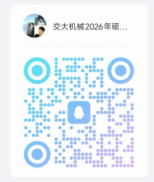 pp电子官方网站为方便通知各位考生复试相关信息,请附件1、附件2中的考生及时加入“交大机械2026年硕士研究生复试通知群”,QQ群号:1077736955,QQ群二维码如下,进群需要用身份证号码后4位进行验证,此群仅做通知使用。