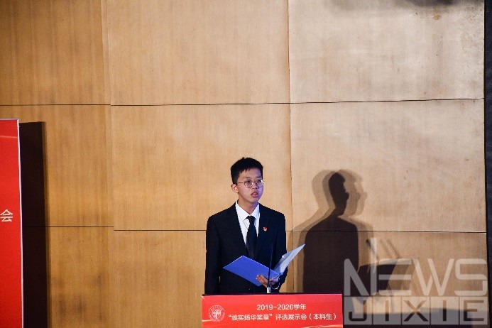 Excellent students from different colleges showed their achievements of the three years to every present student, and there were also some characteristic speeches. One student was studying in the UK, so he could only present by video.