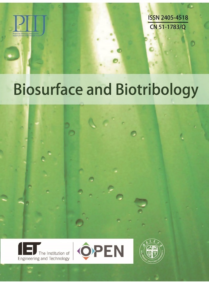 Founded in 2015, BSBT is currently sponsored by the University in collaboration with the Institution of Engineering and Technology (IET), an internationally famous publisher. In 2016, it was nominated as a “Category D Project for the Promotion of International Influence of the China Science & Technology Journals”; in 2018, it was granted the national serial number CN by the National Radio and Television Administration; and in the same year, it was included the databases of Ei Compendex and Scopus. Positioned in a multidisciplinary frontier field, BSBT publishes the relevant research papers, topic reviews and comments related to Biosurface, Biotribology and Bionictribology. The journal focuses on researches in the discipline of mechanical engineering and involves the ones in Biomedical Engineering, Bioscience and Materials Science. To be more specific, subjects of BSBT papers cover basic frontier areas such as tribological theory and technology of Biosurface, Biosurface in biological systems, bionic design and manufacturing of biological surfaces, human organs and issue, biological materials and coatings, biological tissues and biomedical devices, and bionictribology design.