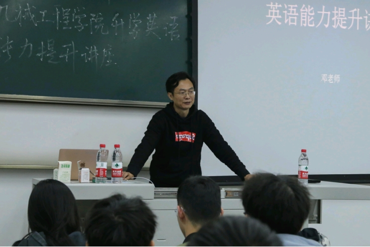 At 19:30 on October 18, 2021, the lecture on improving students' English ability was successfully held in classroom x2224, sponsored by the English learning center of Southwest Jiaotong University and undertaken by the school of mechanical engineering. Deng Li, a teacher from the school of foreign languages of Southwest Jiaotong University, shared with the students the answer skills of English reading comprehension, so as to help the students of the school of mechanical engineering improve their English level and broaden their international vision.