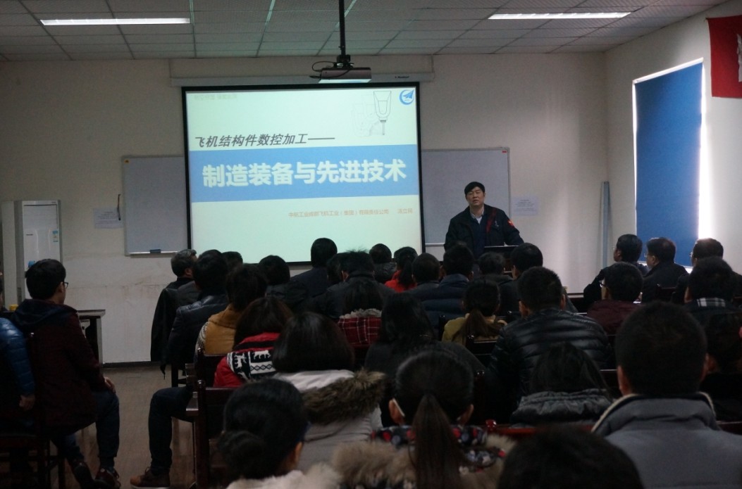 Tang Limin the manager of numerical control plant of Avic Chengdu Aircraft Industrial Group limited company, researcher-level senior engineer, specialist of major national science and technology special core group ”advanced numerical control machine and basic manufacturing equipment”, deputy head of major unit, expert of national mechanical facility evaluation, special expert of avic industrial digitalized manufacturing technique and his party came to our school for exchange and communication.