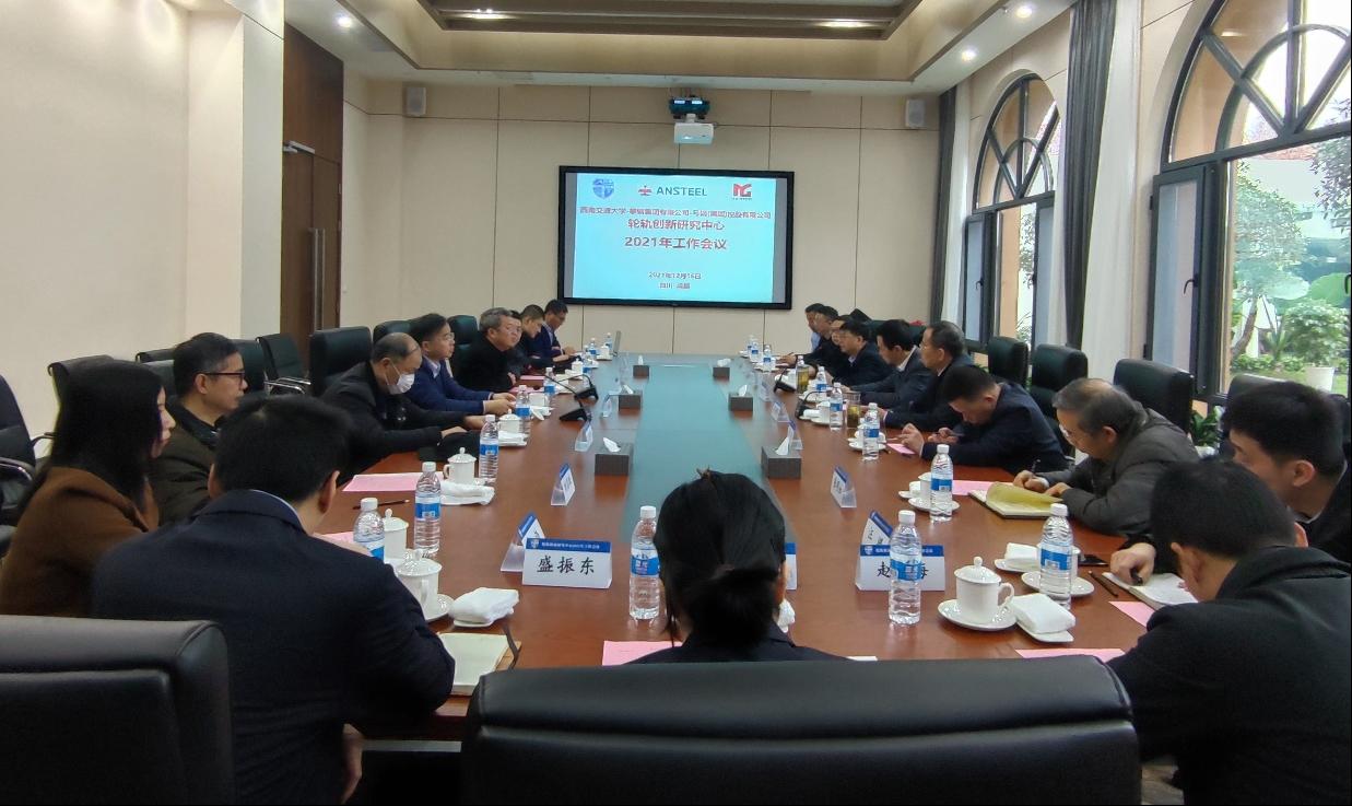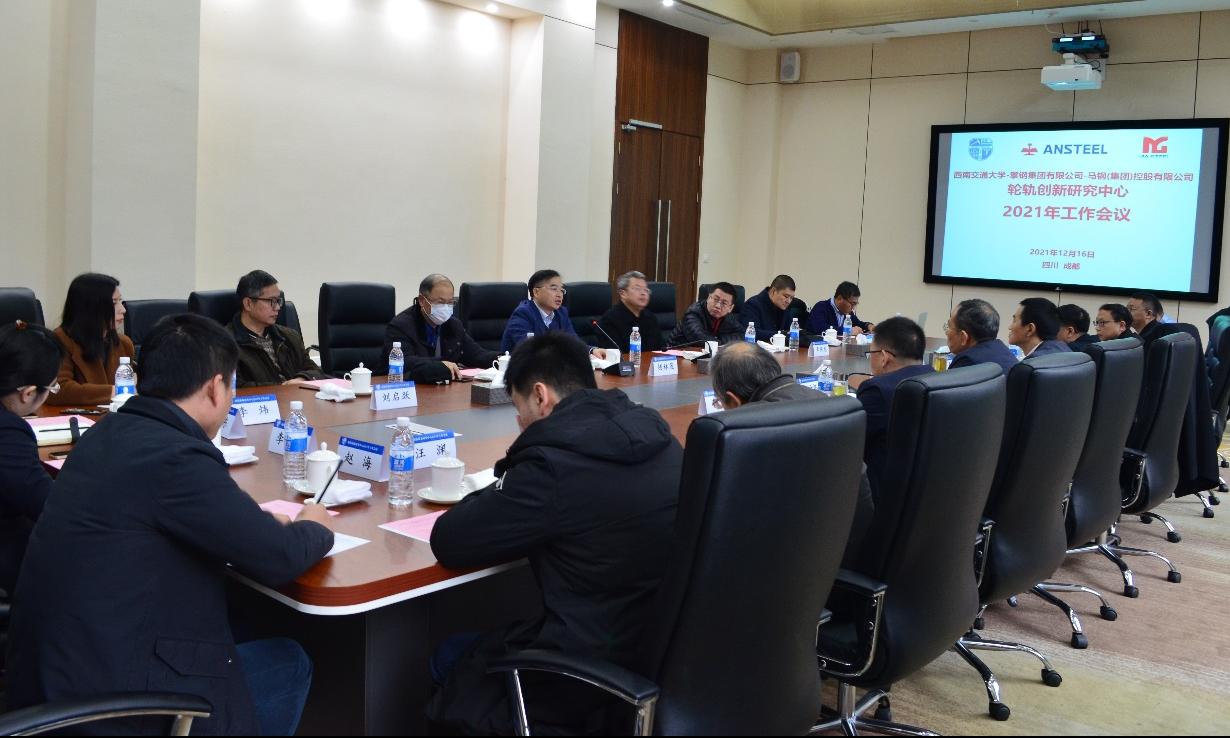 On December 16, 2021, the 2021 working conference of the Wheel and Rail Innovation Research Center jointly established by our school, Pangang Group and Magang Group, was held in the Jinghu Hotel of Southwest Jiaotong University. Participants at the meeting were: Professor Zhou Zhongrong, Vice President of Southwest Jiaotong University and Director of the Wheel and Rail Innovation Research Center. Qian Linmao, Dean of the School of Mechanical Engineering. Li Huailong, Vice President of the Institute of Science and Technology Development. Center researchers Jin Xuesong, Liu Qiyue, Wang Wenjian, Zhao Xin; Yang Xiuliang, Deputy General Manager of Pangang Group Company Limited. Chen Yong, Senior Technical Consultant. Chen Yong, Minister of Science and Technology Innovation Department of Pangang Group Company Limited. Guo Hua, Deputy General Manager of Pangang group Panzhihua Steel Vanadium Co., Ltd., Xu Quan, Vice Minister of Pangang Group Research Institute Co., Ltd.. Senior Engineer Wang Yuan, Senior Engineer Li Xiaoyu, Senior Engineer Sheng Zhendong; Li Xiang, Senior Vice President of Magang Rail Transit Material Technology Co., Ltd.. Zhao Hai, Deputy Director of the Technology Center of Magang Holding Co., Ltd., Senior Commissioner Zhang Mingru; Su Shihuai, President of Anhui Metal Society, etc.