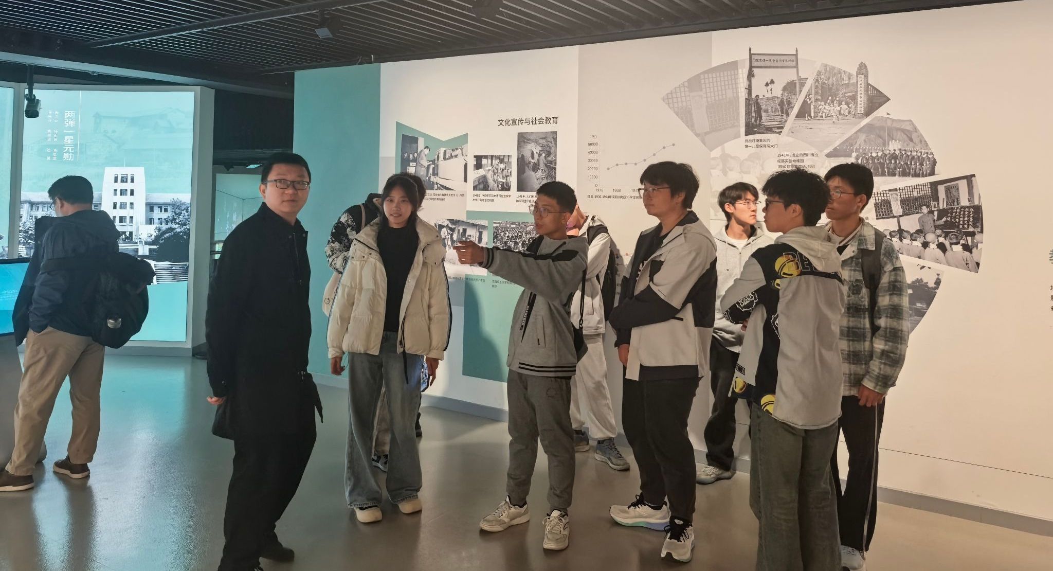 现场讲解员结合详实史料,生动还原了我校前身从唐山启程,先迁至贵州平越,后辗转扎根四川的办学征程。战火纷飞中,师生们肩扛手提保护校产典籍,在简陋的茅草屋、祠堂里坚持授课治学,即便物资匮乏仍潜心钻研学科知识的事迹,让在场同学们深受震撼,大家纷纷驻足凝视展品、认真记录历史细节。