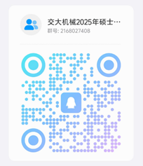 pp电子官方网站为方便通知各位考生复试相关信息,请附件1、附件2中的考生及时加入“交大机械2025年硕士研究生复试通知群”,QQ群号:2168027408,QQ群二维码如下,进群需要用“专业代码+本人姓名+身份证号码后4位”进行验证,此群仅做通知使用。