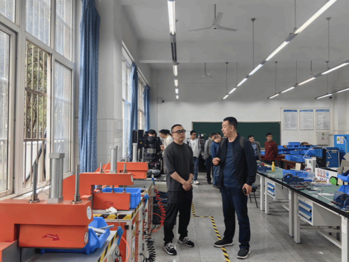 会后,在田怀文带领下,窦建明一行参观学院机械基础国家级实验教学示范中心和pp电子官方网站装备智能制造产教融合示范中心。