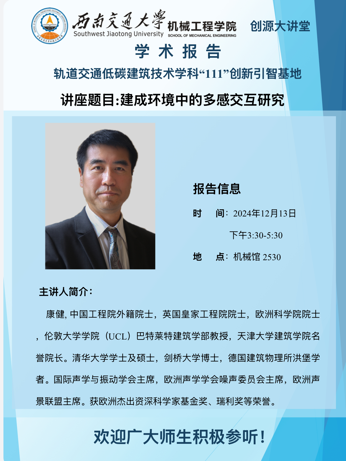讲座地点:机械馆2530