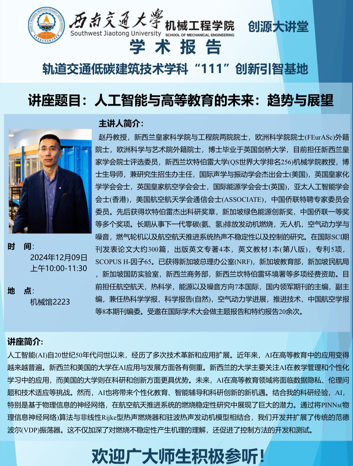 讲座地点:机械馆2223
