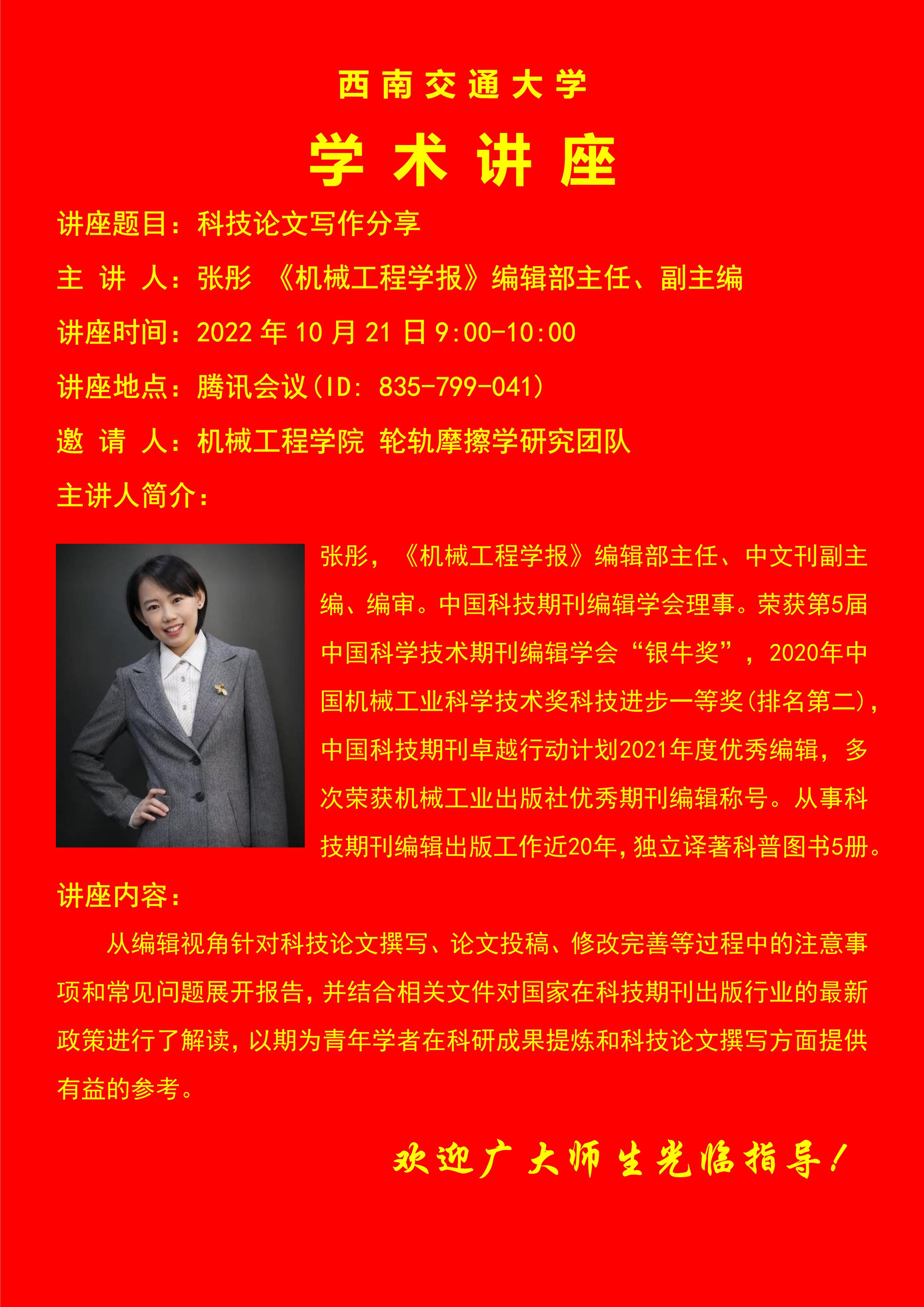 科技论文写作分享(张彤:机械工程学报编辑部主任、副主编)