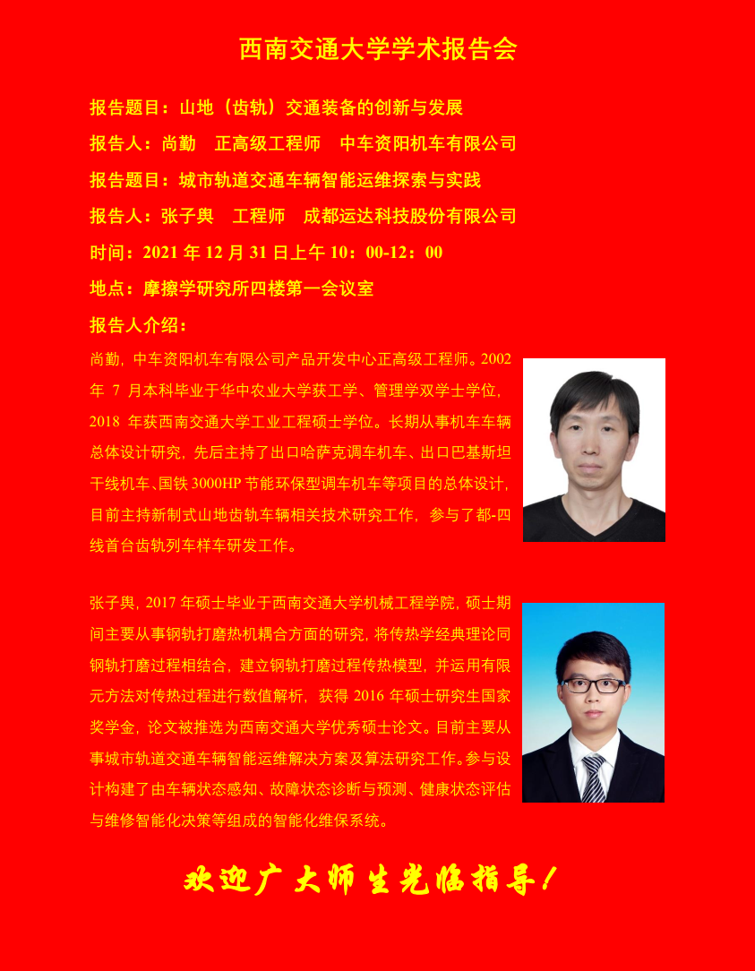 轨道交通装备与运维技术学术报告会